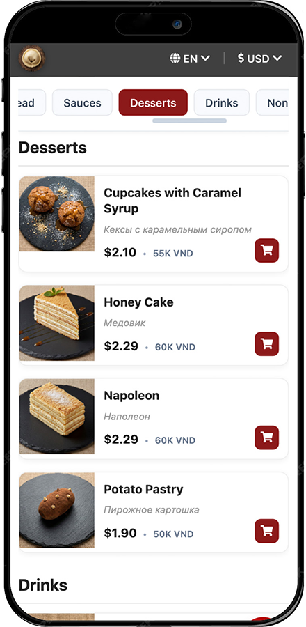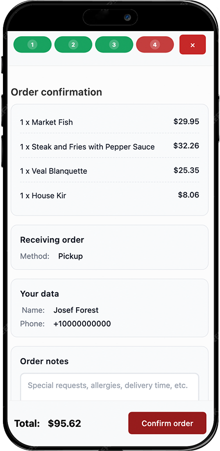 - Los nombres originales de los platos quedan en el carrito para que el personal confirme el pedido al instante.